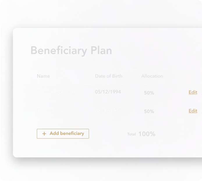 To designate a beneficiary, login to your Safecap Financials account and select the brokerage account you’d like to add a plan to. Click the “Beneficiaries” tab and start creating your plan!